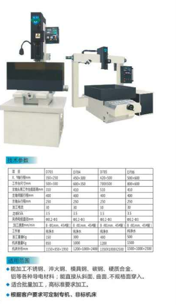 能加工不銹鋼、淬火鋼、磨具鋼、碳鋼、硬質合金、鋁等各種導電材料;能直接從斜面、曲面、不規則面穿入。