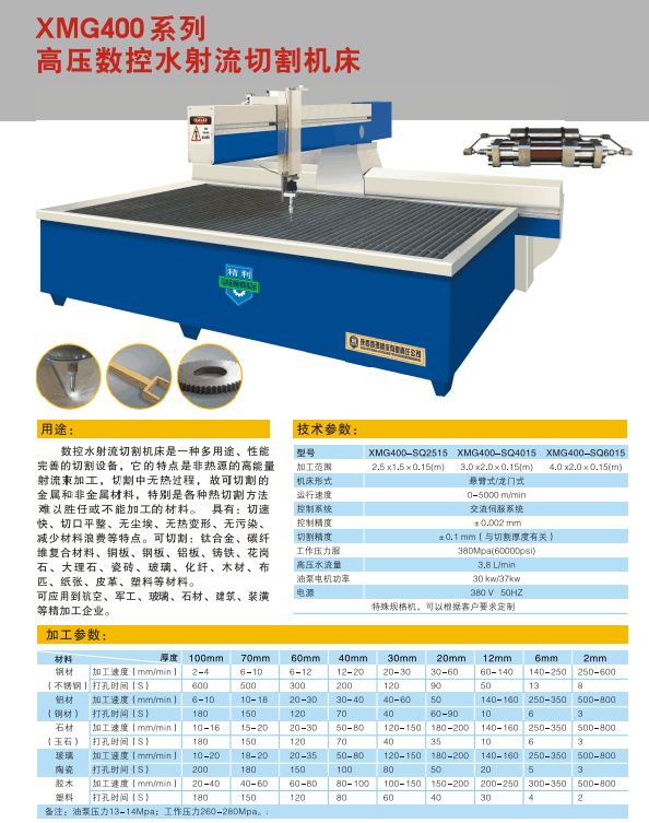 2.切割易燃性材料,塑料、布料、聚氨酯、木材、紙品、皮革、橡膠等,水切割加工不會產(chǎn)生燃燒,可以對上述材料進(jìn)行切割,被切割材料的物理、機(jī)械性能不發(fā)生改變,